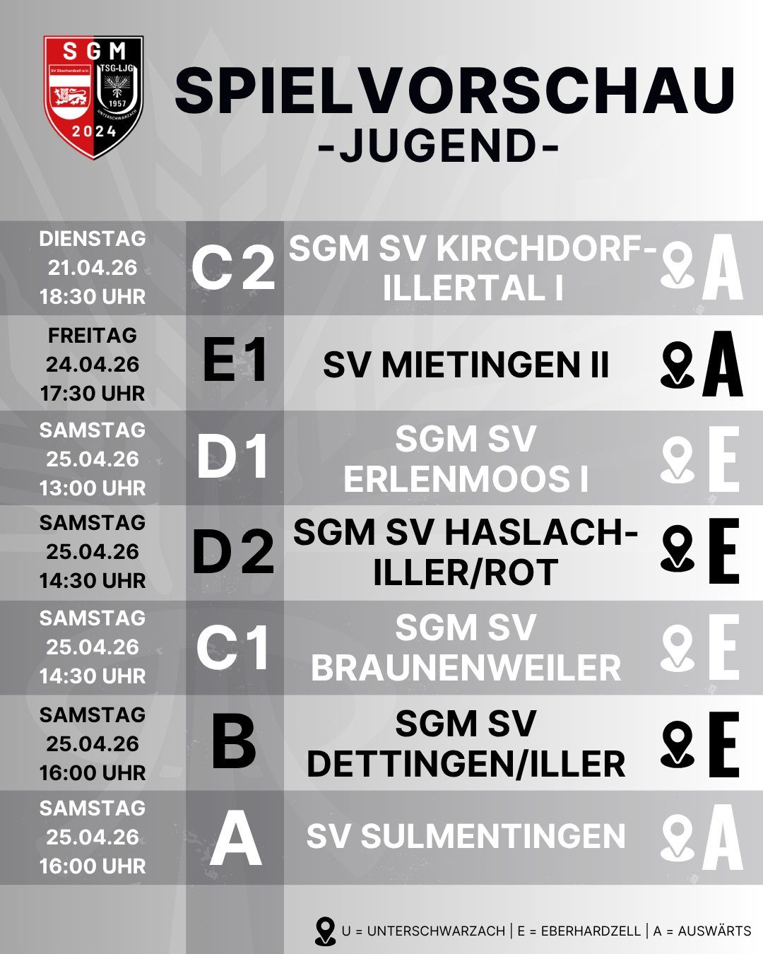 Am kommenden Wochenende, 03./04. Januar 2026, findet das alljährliche Jugendhallenturnier der TSG-LJG Unterschwarzach in der Riedsporthalle in Bad Wurzach statt.